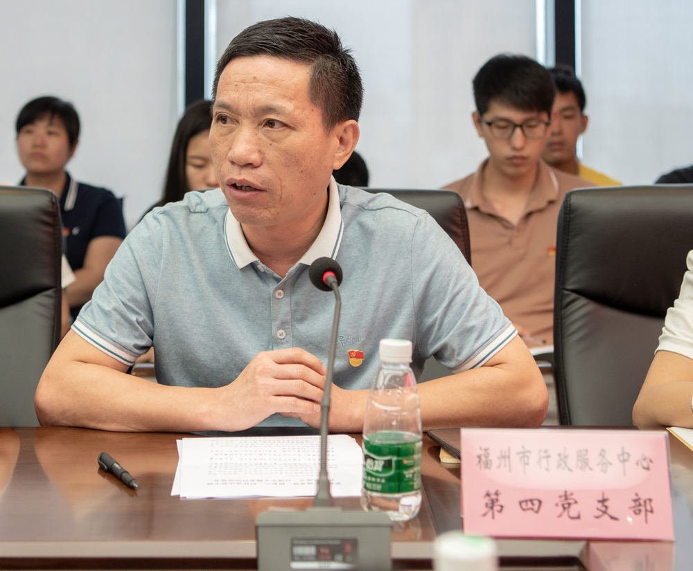 党课后,共建单位党员代表在主题活动中发了言。福州市行政服务中心第四党支部林碧锦书记表示,通过学习更加清晰的了解到中国共产党的诞生及百年历程的艰辛和辉煌,也更加明确了如何从党史学习教育中吸取智慧和力量。认识到在中国共产党成立100周年之际,全党开展党史学习教育,是以习近平同志为核心的党中央统筹全局、着眼长远作出的重大决策,是我们党牢记初心使命、不负先辈、不负后人的战略举措。表示要深入学习贯彻习近平总书记在党史学习教育动员大会上的重要讲话,提高政治站位,切实增强使命感和责任感,作为市营商环境企业开办组牵头单位,将持续为优化我市营商环境、在平凡岗位上弘扬奋斗精神,为深化放管服改革作出新贡献。