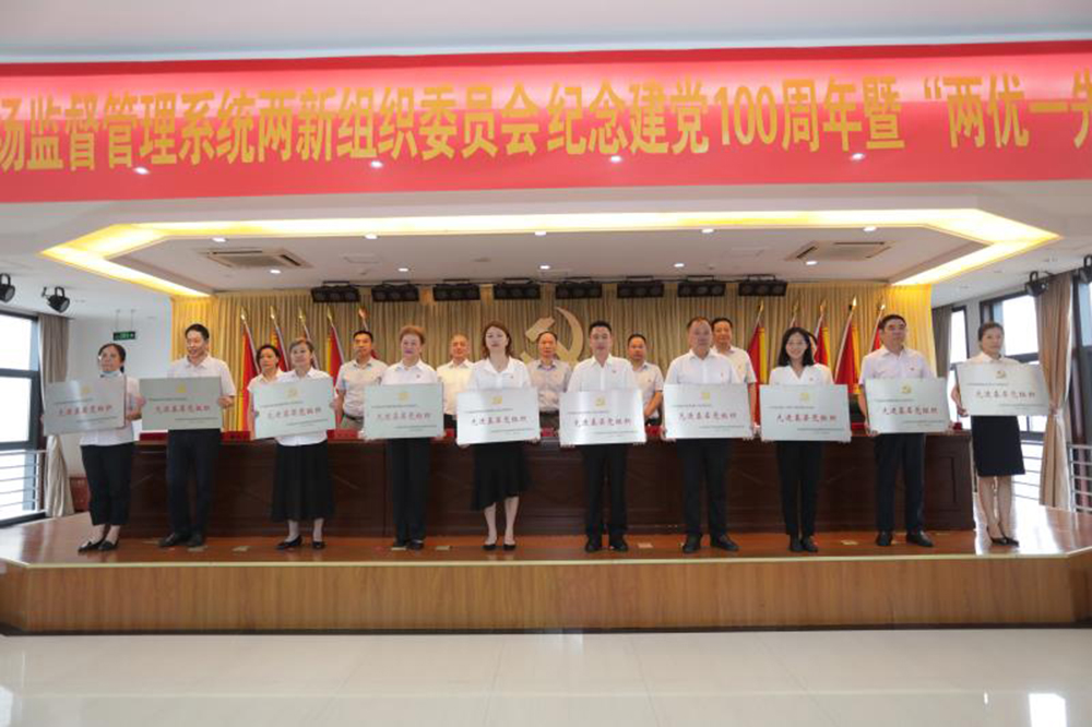 6月28日,福州市市场监督管理系统两新组织党委庆祝建党100周年暨“两优一先”表彰大会隆重召开。福建省市场监管局党组成员、总工程师、小微企业和个体经济组织党委书记张元榕,福州市委两新工委专职副书记陈有飞,福州市市场监管局党组成员、副局长、系统两新组织党委书记薛文等领导出席会议。