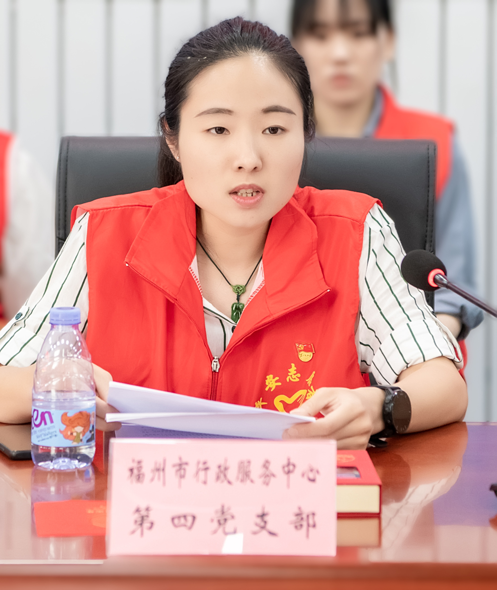 福州市行政服务中心支部党员志愿者代表周劭莹表示:站在党的百年历史新起点,作为一名共产党员,肩负着为国争光的重大职责和使命,我们要在学习实践中坚定理想信念,练就过硬本领,担当时代重任,坚持与国家同命运、与时代同进步,在工作岗位上兢兢业业,在研学路上孜孜不倦,始终保持“排头兵”的姿态,坚持不懈,努力奋斗,为全方位推动高质量发展超越、奋力谱写全面建设社会主义现代化国家的福建篇章贡献力量。
